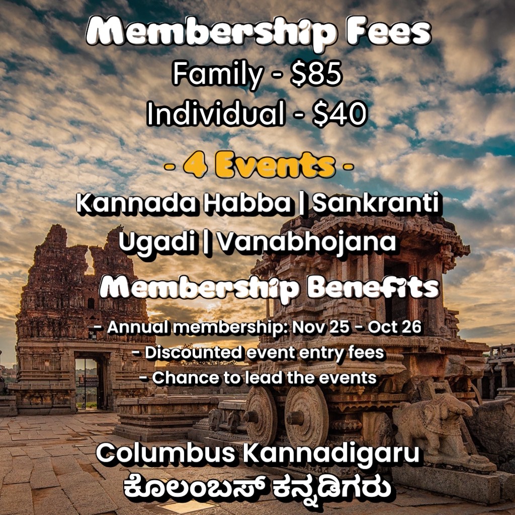 - Direct Support: Members can feel a sense of accomplishment knowing their fees directly support the CK operations and programs thereby our Kannada community in Columbus, IN.